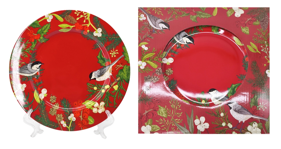 Блюдо 27 см с новогодним дизайном.Размер 27х27х2.5 см. Изготовлено из тонкого фарфора. В подарочной упаковке. Отличный подарок к новому году! Можно использовать в посудомоечной машине и в СВЧ.
