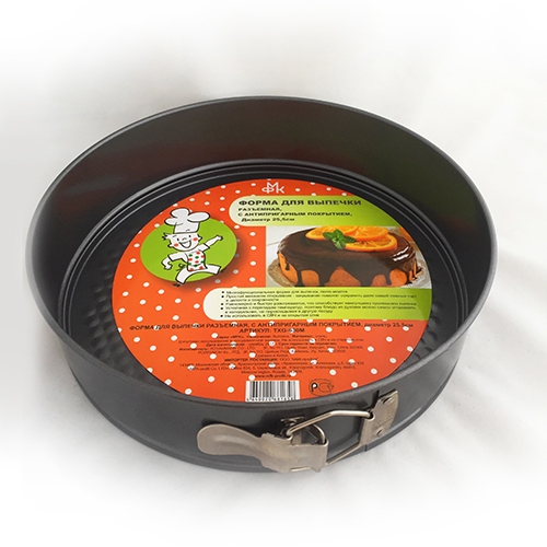 Универсальная разъемная форма для выпечки изготовлена из углеродистой стали с антипригарным покрытием. Диаметр формы 25/5 см, высота 6.6 см. Имеет разъем, с помощью которого снимается дно и выпечка легко вынимается из формы. Для использования в духовом шкафу. Перед каждым применением смажьте внутреннюю часть формы небольшим количеством масла. Можно использовать в посудомоечной машине. Сделано в Китае.