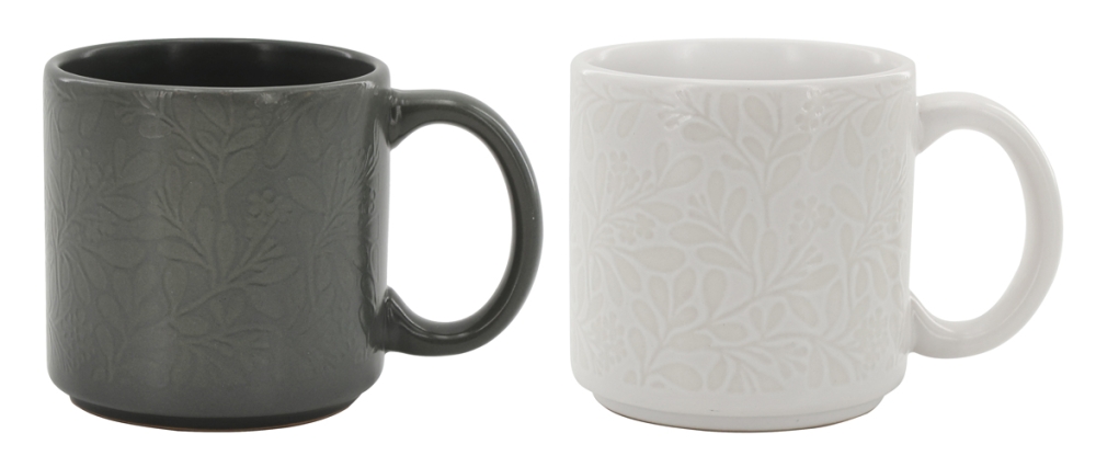 Кружка изготовлена из рельефной керамики. Фактический литраж 420 мл. В ассортименте 2 цвета: белый и серый. Можно использовать в посудомоечной машине и в СВЧ.