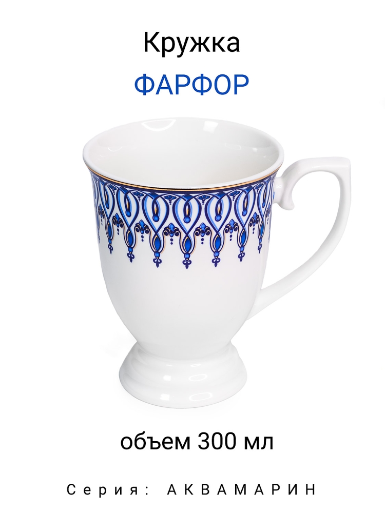 Кружка из тонкого фарфора с золотом из коллекции посуды "Аквамарин". Литраж 300 мл