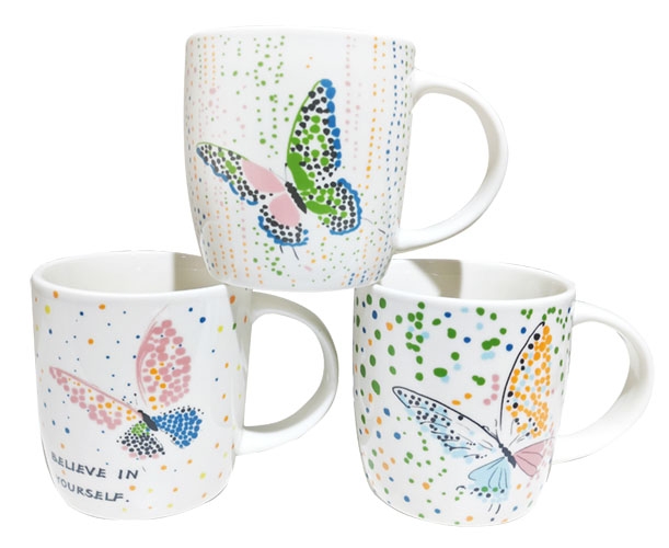 Кружка с дизайном"Бабочка" . Литраж 360 мл. Размер: 12x8.5x9.2 cм. Материал: фарфор. В ассортименте 3 дизайна. Можно использовать в посудомоечной машине и в СВЧ,