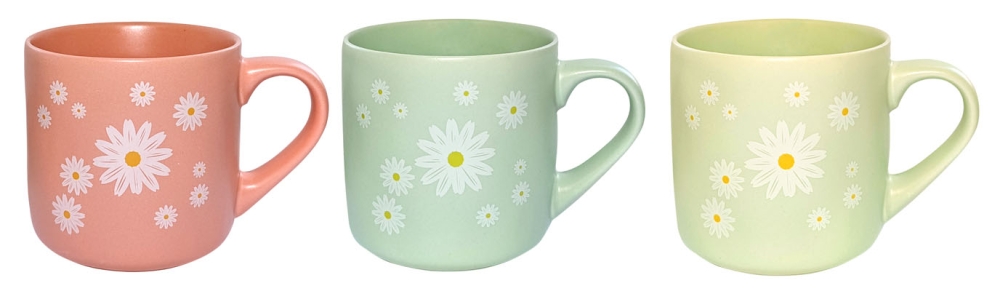 Кружка 370 мл с дизайном Цветы. В ассортименте 3 цвета. Материал: керамика. Можно использовать в посудомоечной машине и в СВЧ.