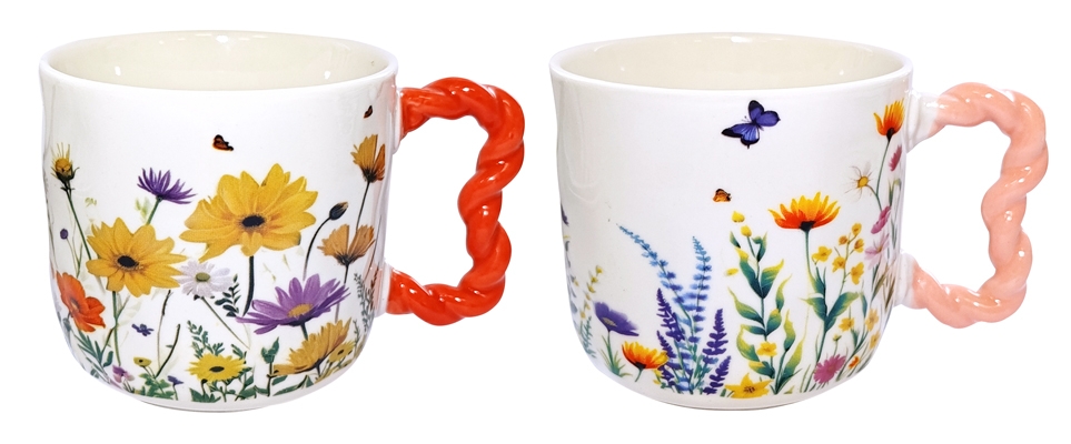 Кружка 420 мл. В ассортименте 2 дизайна с цветами. Кружка изготовлена из тонкого фарфора. Можно использовать в СВЧ и в посудомоечной машине. Сделано в Китае.