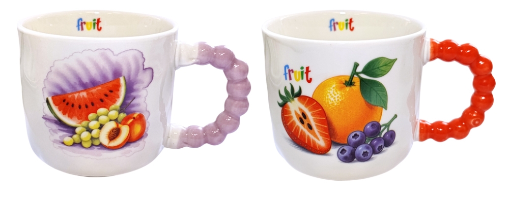Кружка 420 мл. В ассортименте 2 дизайна с фруктами. Кружка изготовлена из тонкого фарфора. Можно использовать в СВЧ и в посудомоечной машине. Сделано в Китае.