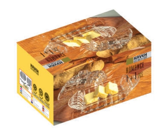 Масленка стеклянная размером 17.5 х 11 х 8 см с крышкой. Объем 410 мл. Имеет рельефную форму в виде квадратов. В подарочной упаковке.Торговая марка "Kaveh" (Иран). Можно использовать в посудомоечной машине, не рекомендуется использовать в СВЧ.