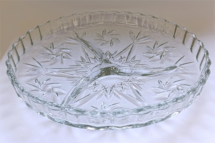 Менажница стеклянная размером 23.5 х23.5 х 5 см. Менажница имеет 3 секции и рельефную форму в виде цветов. В подарочной упаковке. Торговая марка "Kaveh" (Иран). Можно использовать в посудомоечной машине, не использовать в СВЧ.