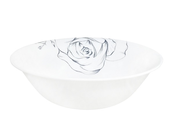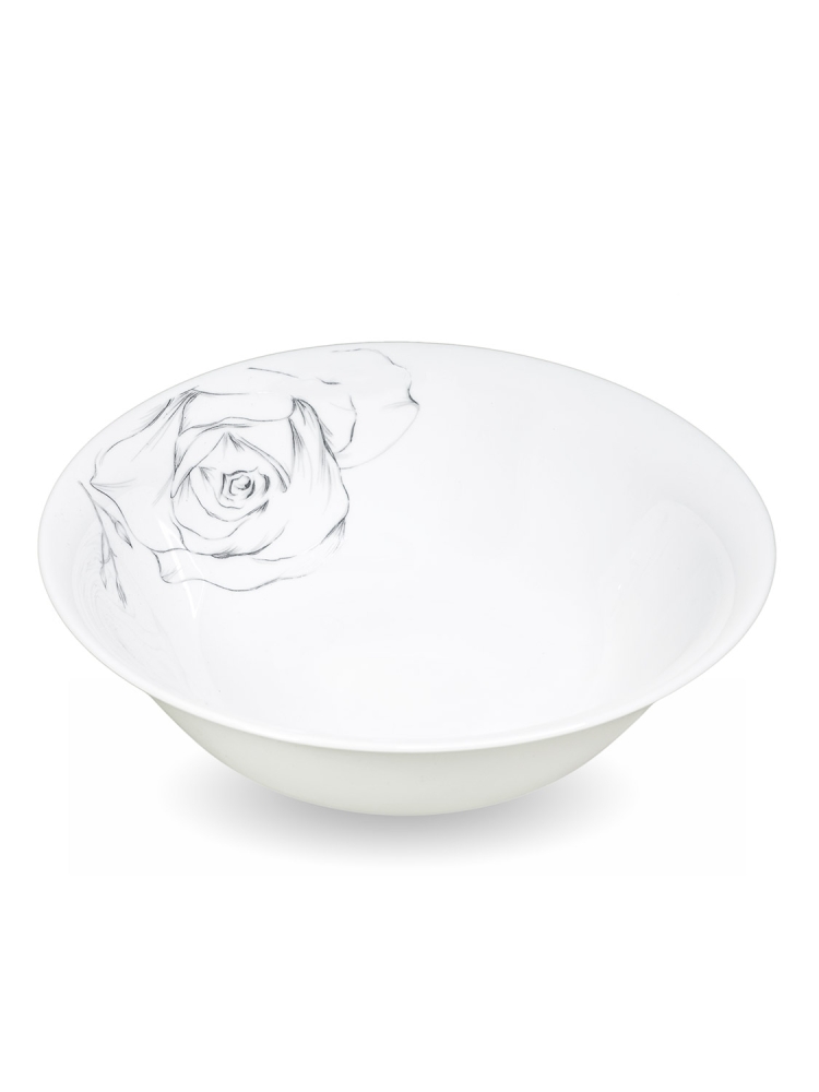 Коллекция "Эскиз розы" изготовлена из белоснежной тонкой стеклокерамики с легким, едва заметным узором.