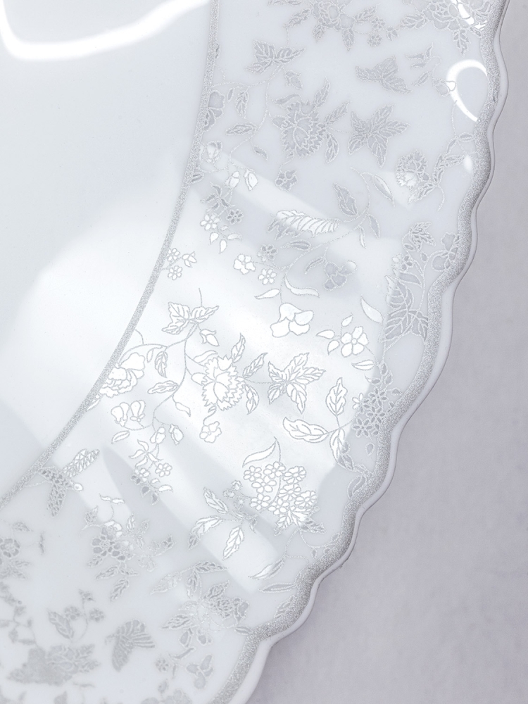 Коллекция "Гармония" изготовлена из белоснежной тонкой стеклокерамики с легким цветочным узором. Простота и изысканность коллекции подойдет как для повседневного использования, так и для праздничного стола.