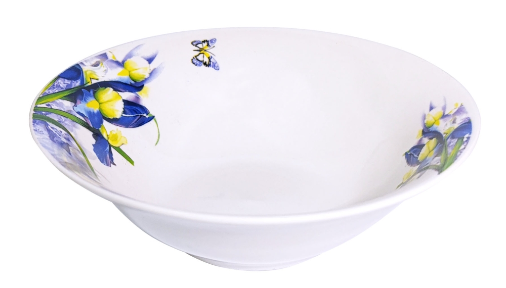 Миска суповая 18 см с цветочным дизайном "Ирисы". Материал: фарфор. Размер 18 х 18 х 5.7 см. Литраж 600 мл. Можно использовать в качестве суповой тарелки или салатника. Можно использовать в посудомоечной машине и в СВЧ. Сделано в Китае.