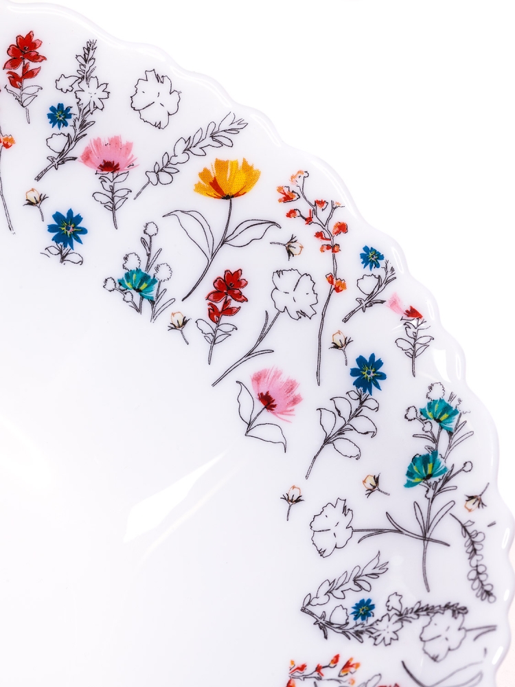 Коллекция "Летнее настроение" изготовлена из белоснежной тонкой стеклокерамики с легким цветочным узором. Простота и изысканность коллекции подойдет как для повседневного использования, так и для праздничного стола.