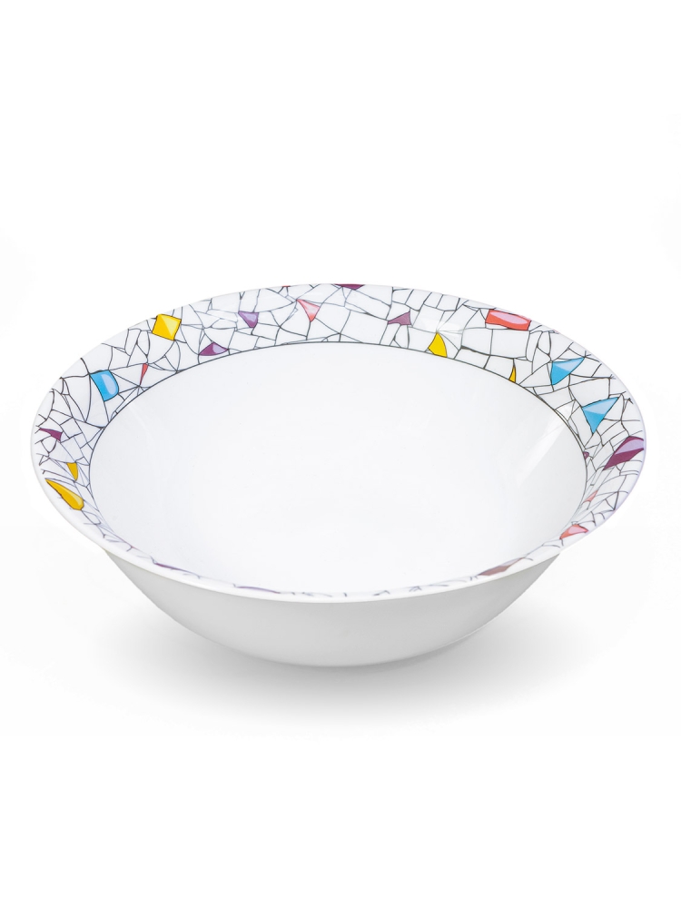 Коллекция "Мозаика" изготовлена из белоснежной тонкой стеклокерамики с мозаичным узором.