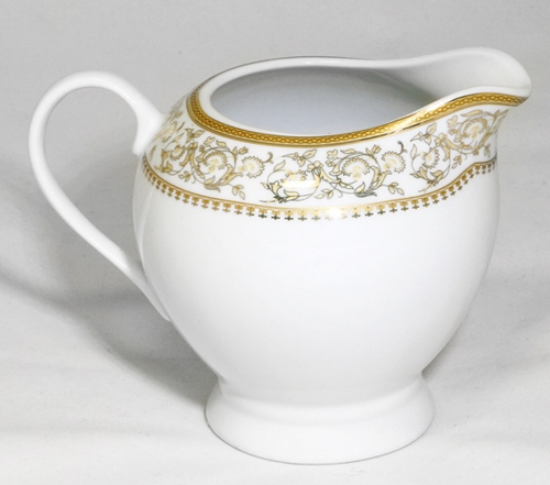 Молочник из тонкого фарфора с золотом из коллекции посуды "Империя", . На изделии нанесена золотая деколь в виде цветов и завитков. Объем 250мл
