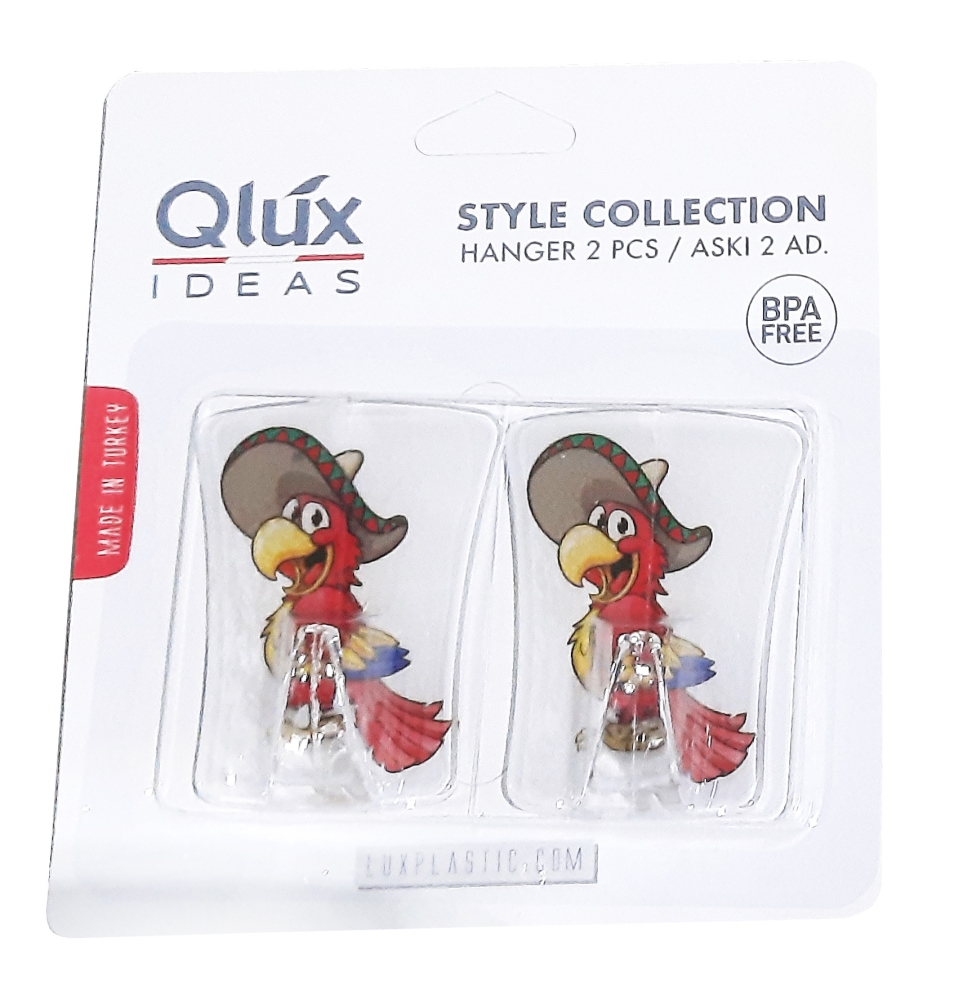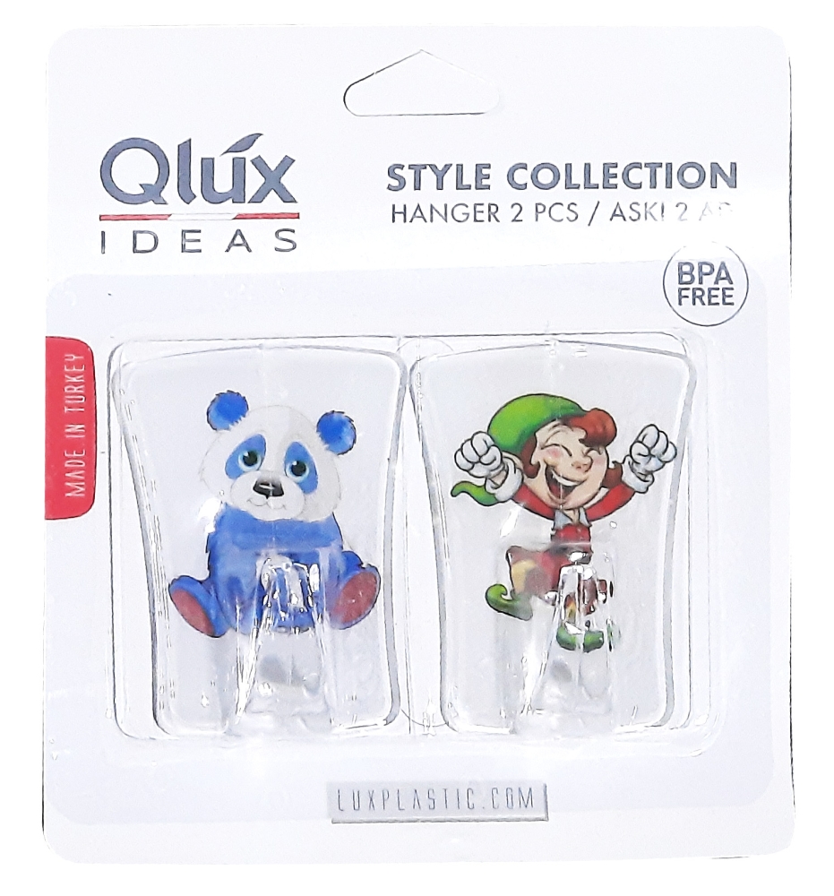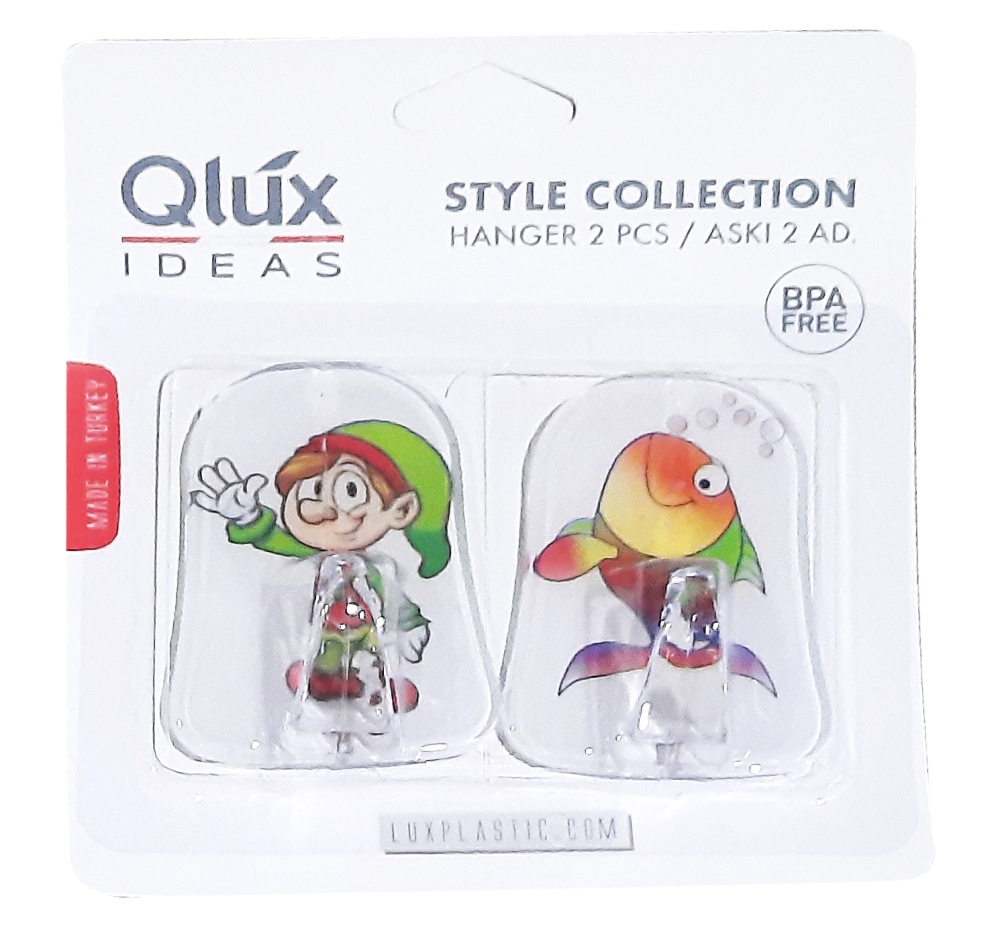 В наборе два пластиковых крючка на липучке. Набор поставляется в блистерной упаковке. В ассортименте 6 дизайнов крючков. Торговая марка QLUX (Турция).