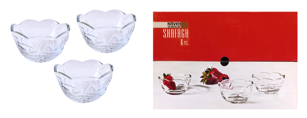Набор из 6 стеклянных салатников SHAFAGH 120 мл D 9 см H 4.5 см. В подарочной упаковке. Торговая марка "Kaveh" (Иран). Можно использовать в посудомоечной машине, не использовать в СВЧ.