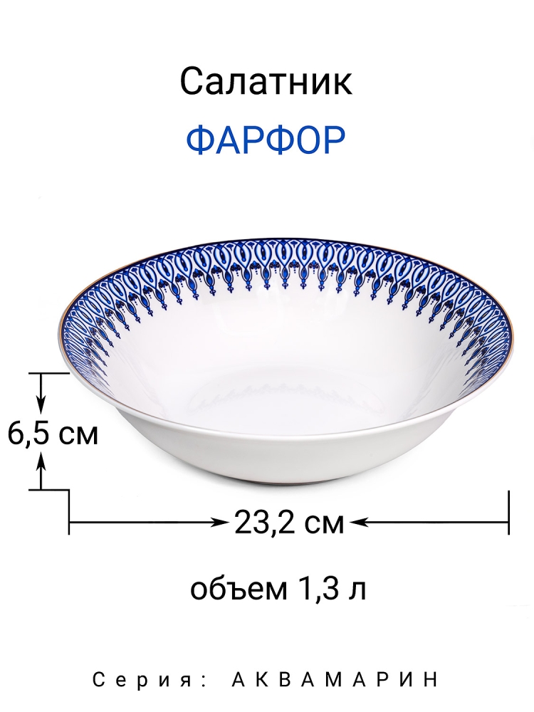 Салатник из тонкого фарфора с золотом из коллекции посуды "Аквамарин". Литраж 1200 мл