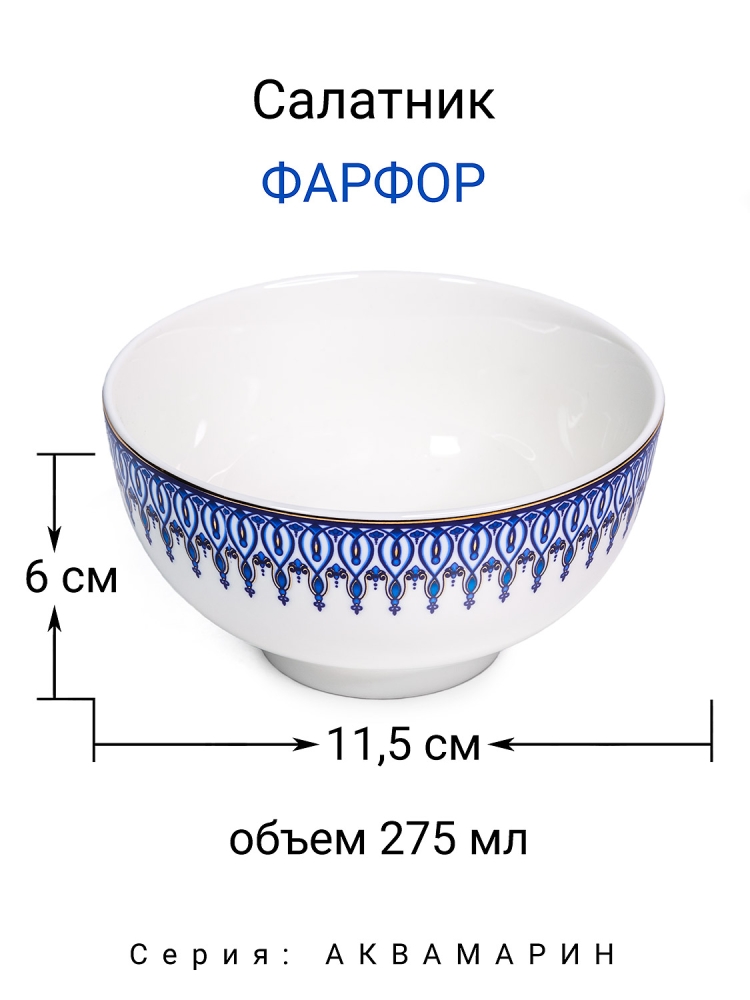 Салатник из тонкого фарфора с золотом из коллекции посуды "Аквамарин". Литраж 275 мл, Диаметр 11,4 см