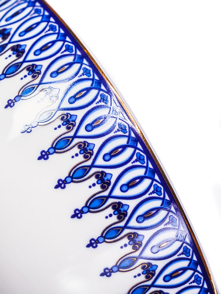 На изделии нанесена деколь в виде восточного узора в синих тонах с золотом.