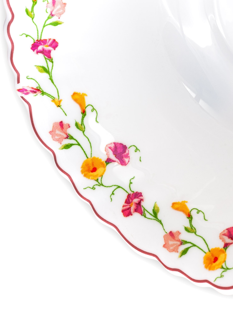 Коллекция "Эльзас" изготовлена из белоснежной тонкой стеклокерамики с изящным цветочным узором.