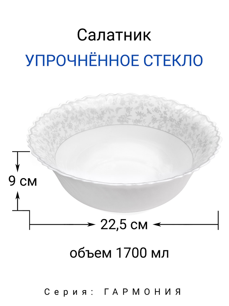 Продукция имеет волнистый край. Объем 1700 мл, Диаметр 22,5 см. Торговая марка "МФК". Можно использовать в посудомоечной машине и СВЧ