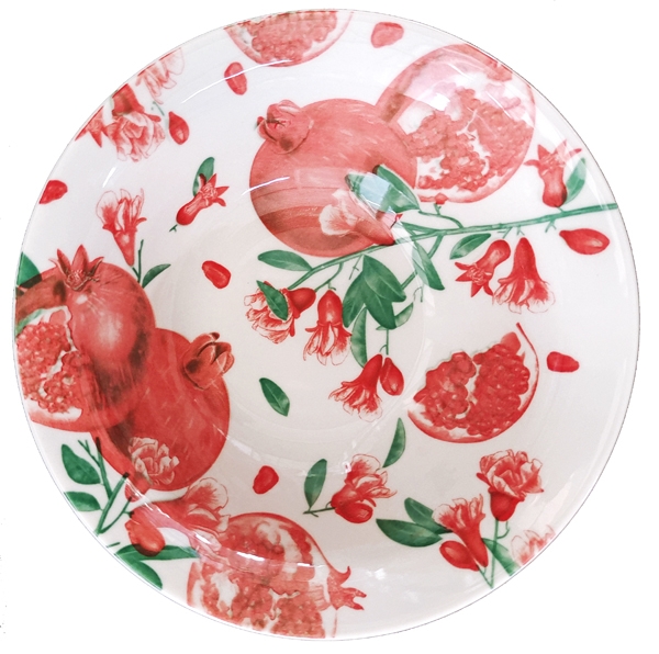 Салатник из коллекции фарфоровой посуды "Гранат". На изделии изображены плоды и цветы гранатового дерева. Диаметр салатника 15 см, высота 5 см, литраж 350 мл. Салатник можно использовать в посудомоечной машине и СВЧ. Сделано в Китае.