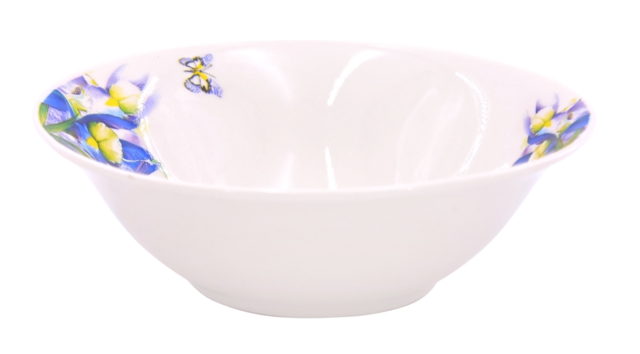 Салатник 15 см с цветочным дизайном "Ирисы". Материал: фарфор. Размер 15 х 15 х 5 см. Литраж 350 мл. Можно использовать в качестве суповой тарелки или салатника. Можно использовать в посудомоечной машине и в СВЧ. Сделано в Китае.