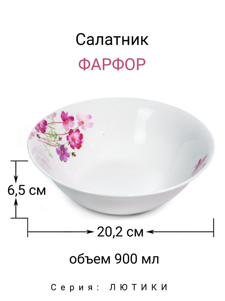 Салатник 20 см с цветочным дизайном "Лютики". Материал: фарфор. Размер 20 х 20 х 6.7 см. Литраж 900 мл. Можно использовать в качестве суповой тарелки или салатника. Можно использовать в посудомоечной машине и в СВЧ. Сделано в Китае.