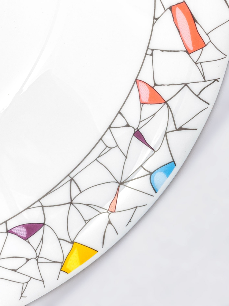 Коллекция "Мозаика" изготовлена из белоснежной тонкой стеклокерамики с мозаичным узором.