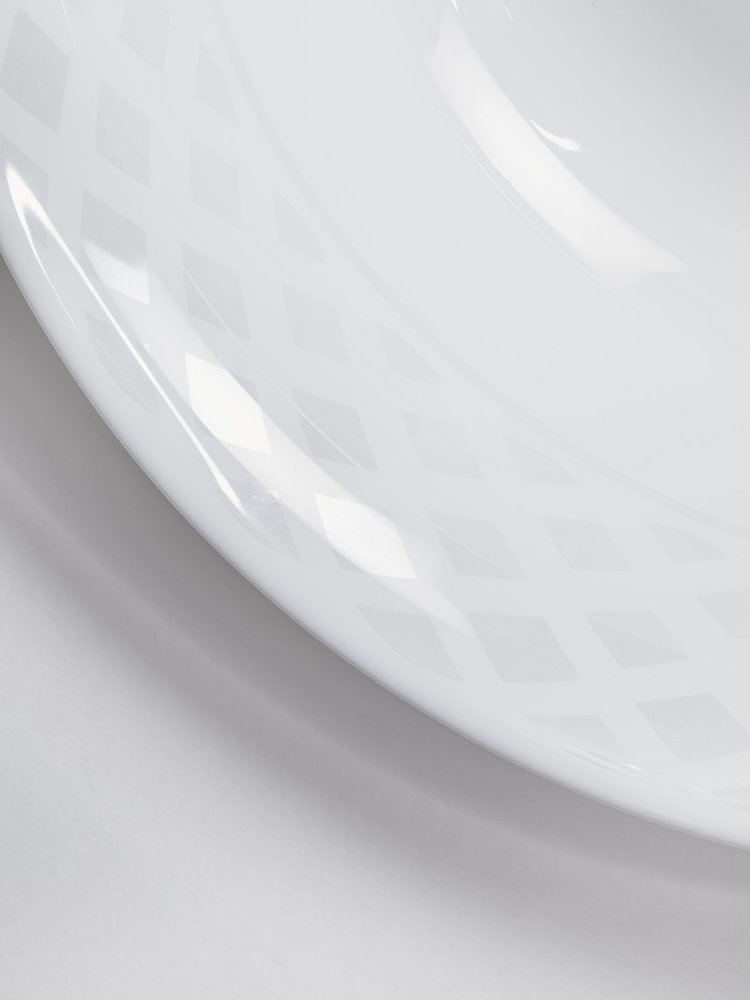 Коллекция "Сильвер" изготовлена из белоснежной тонкой стеклокерамики с лаконичным узором.