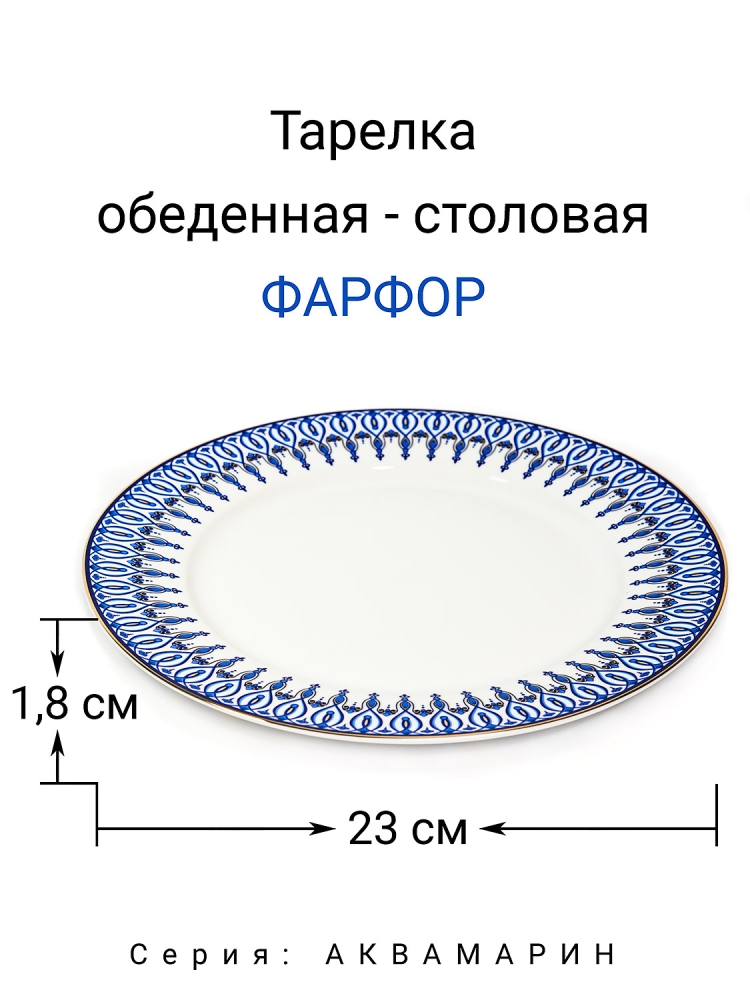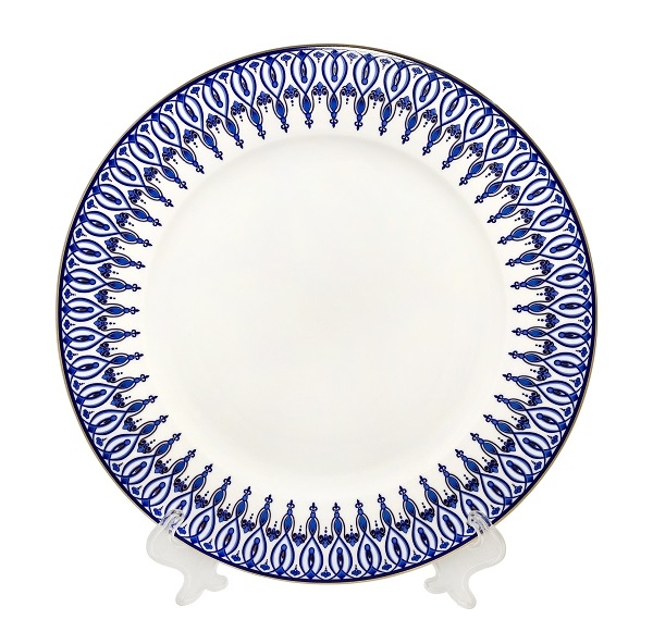 Тарелка из тонкого фарфора с золотом из коллекции посуды "Аквамарин".