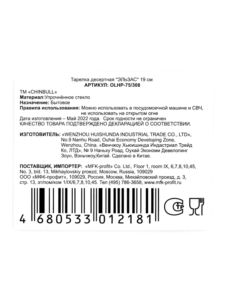 Продукция имеет волнистый край. Диаметр 19 см. Торговая марка "CHINBULL" (Китай).