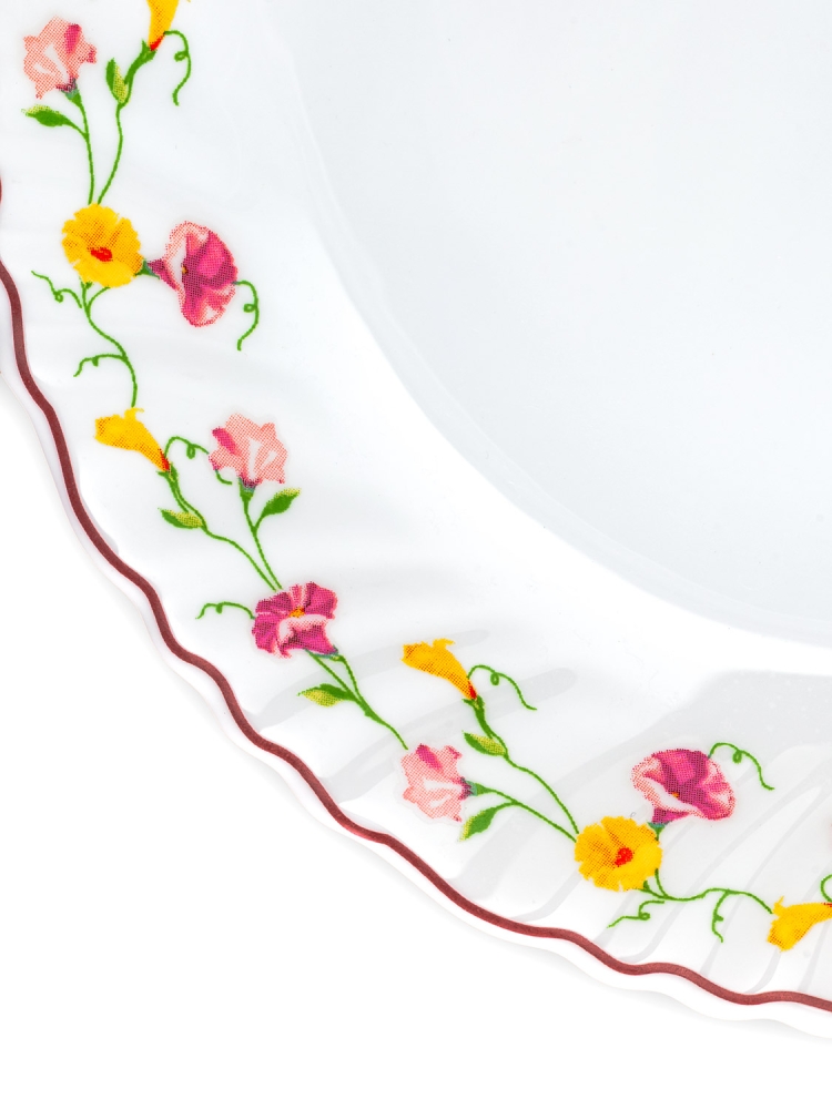 Коллекция "Эльзас" изготовлена из белоснежной тонкой стеклокерамики с изящным цветочным узором.
