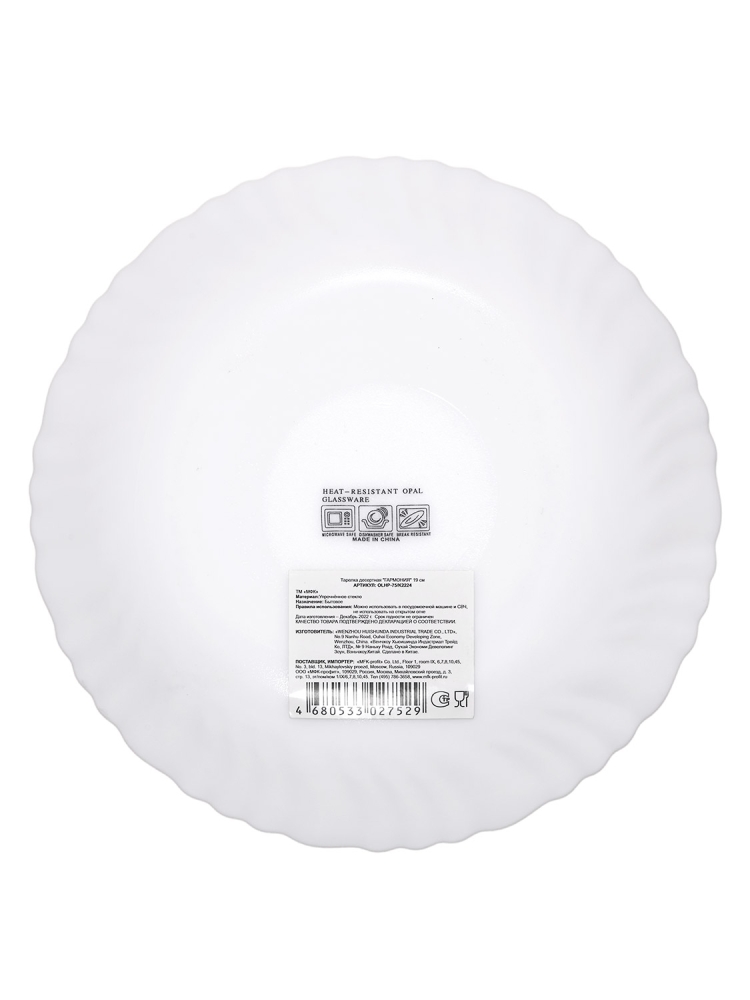 Продукция имеет волнистый край. Диаметр 19см. Торговая марка "МФК". Можно использовать в посудомоечной машине и СВЧ