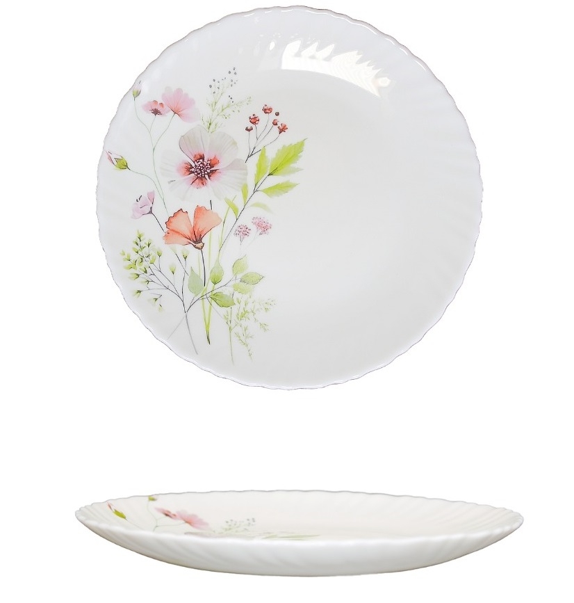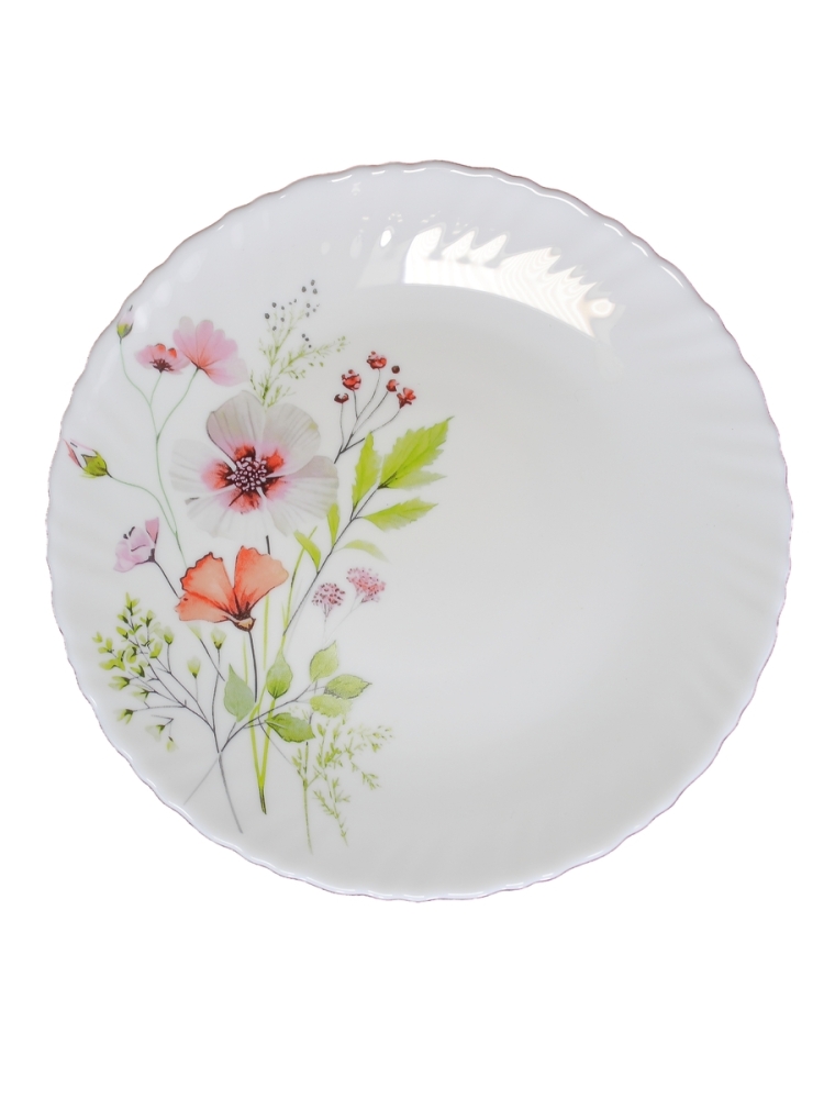 Коллекция "Сухоцветы" изготовлена из белоснежной тонкой стеклокерамики с фигурным краем.