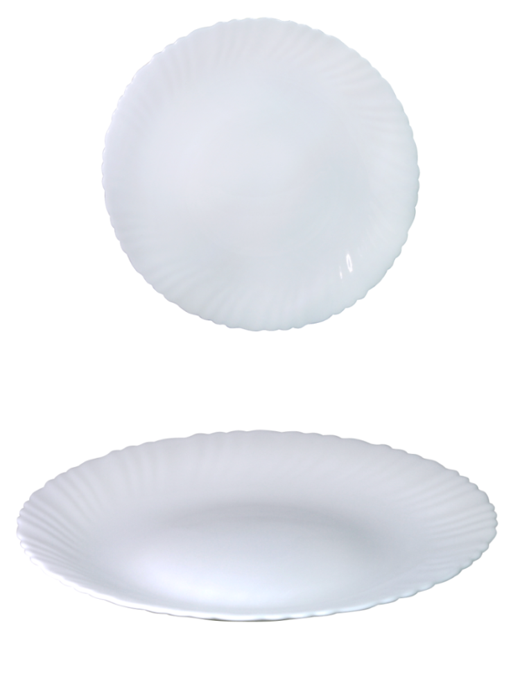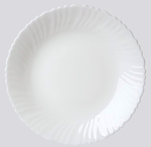Коллекция посуды изготовлена из тонкого опалового упрочненного стекла с волнистым краем.