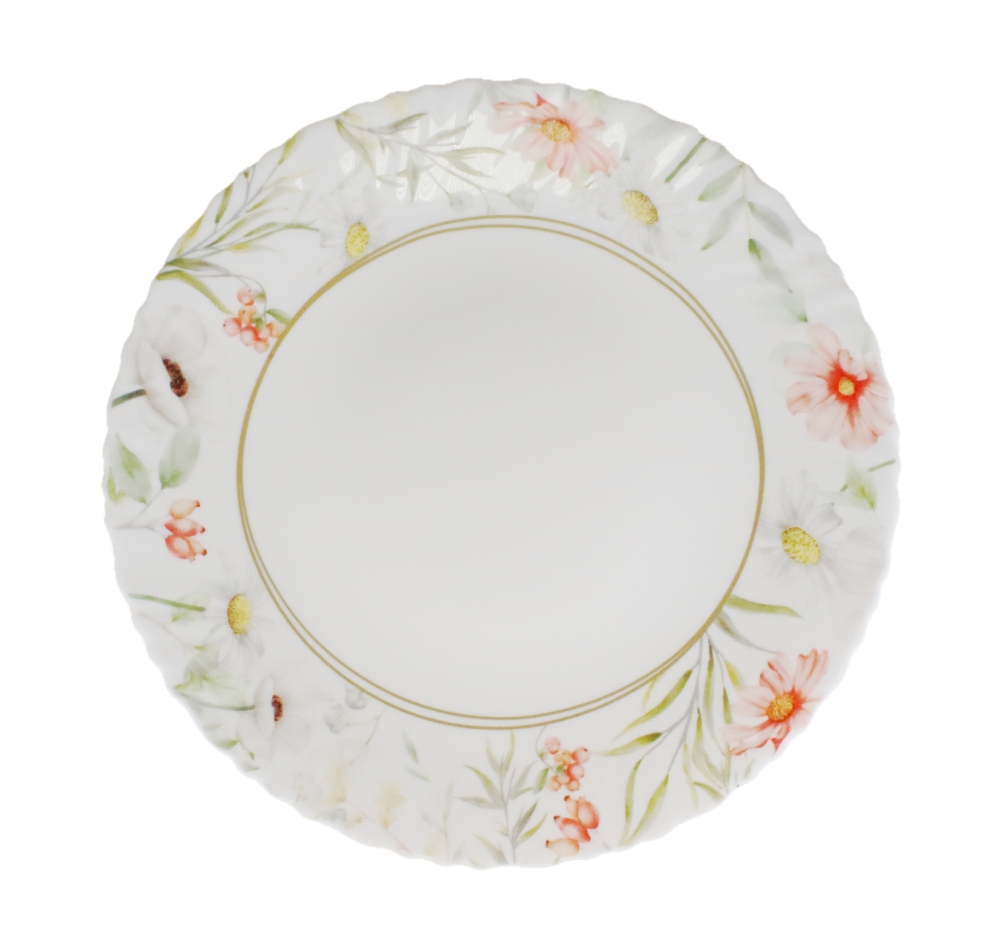 Коллекция "БУКЕТ" изготовлена из белоснежной тонкой стеклокерамики с утончённым узором цветов.