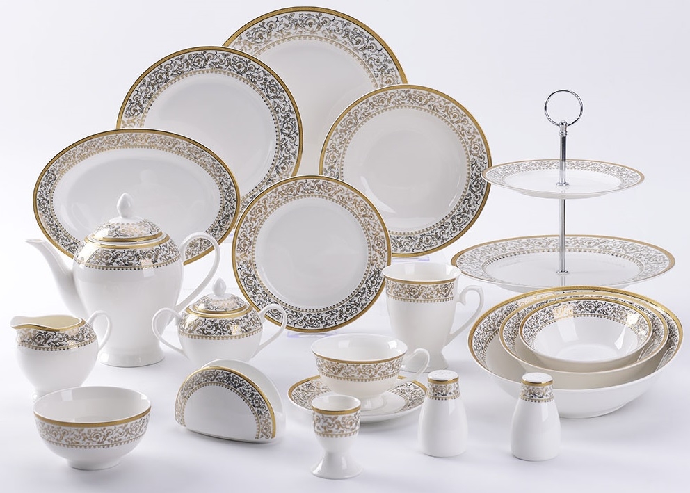 Тарелка из тонкого фарфора с золотом из коллекции посуды "Империя".