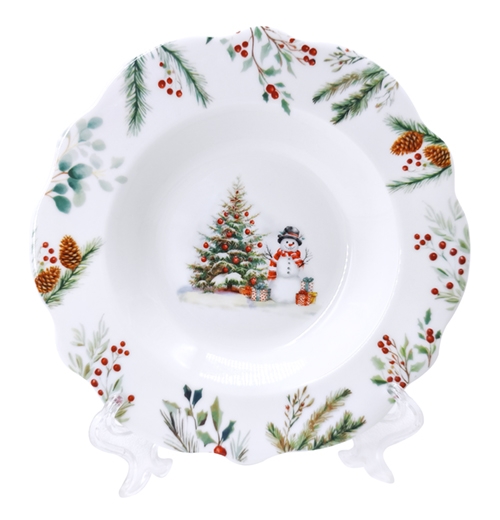 Тарелка суповая с новогодним дизайном.Размер 21.5х21.5х3.5 см. Изготовлена из белого фарфора. Отличный подарок к новому году! Можно использовать в посудомоечной машине и в СВЧ.