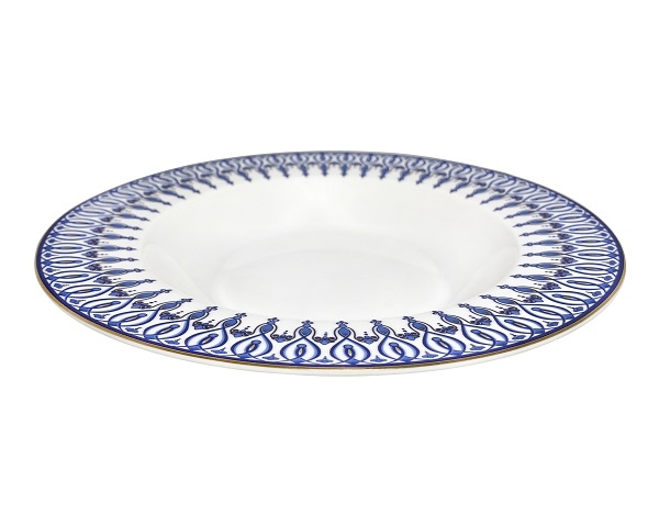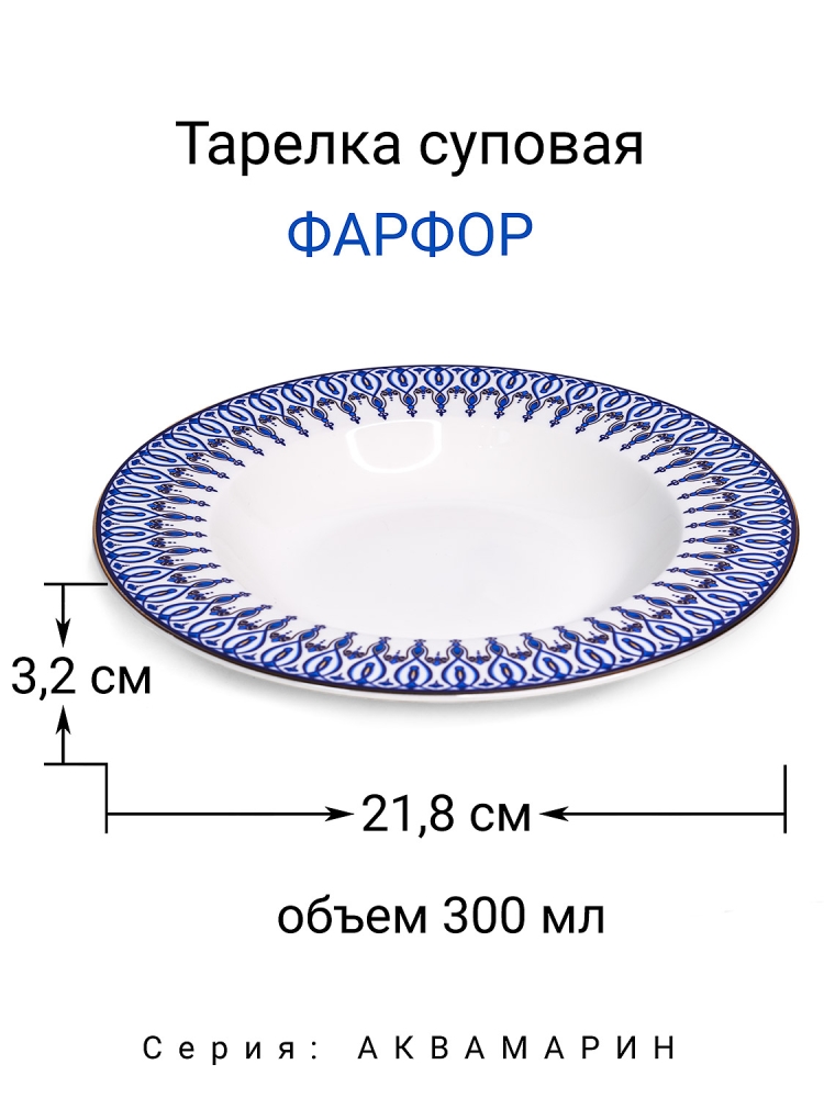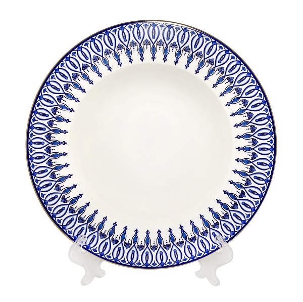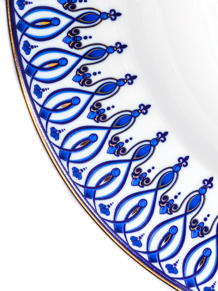 Тарелка из тонкого фарфора с золотом из коллекции посуды "Аквамарин". Объем 300 мл.